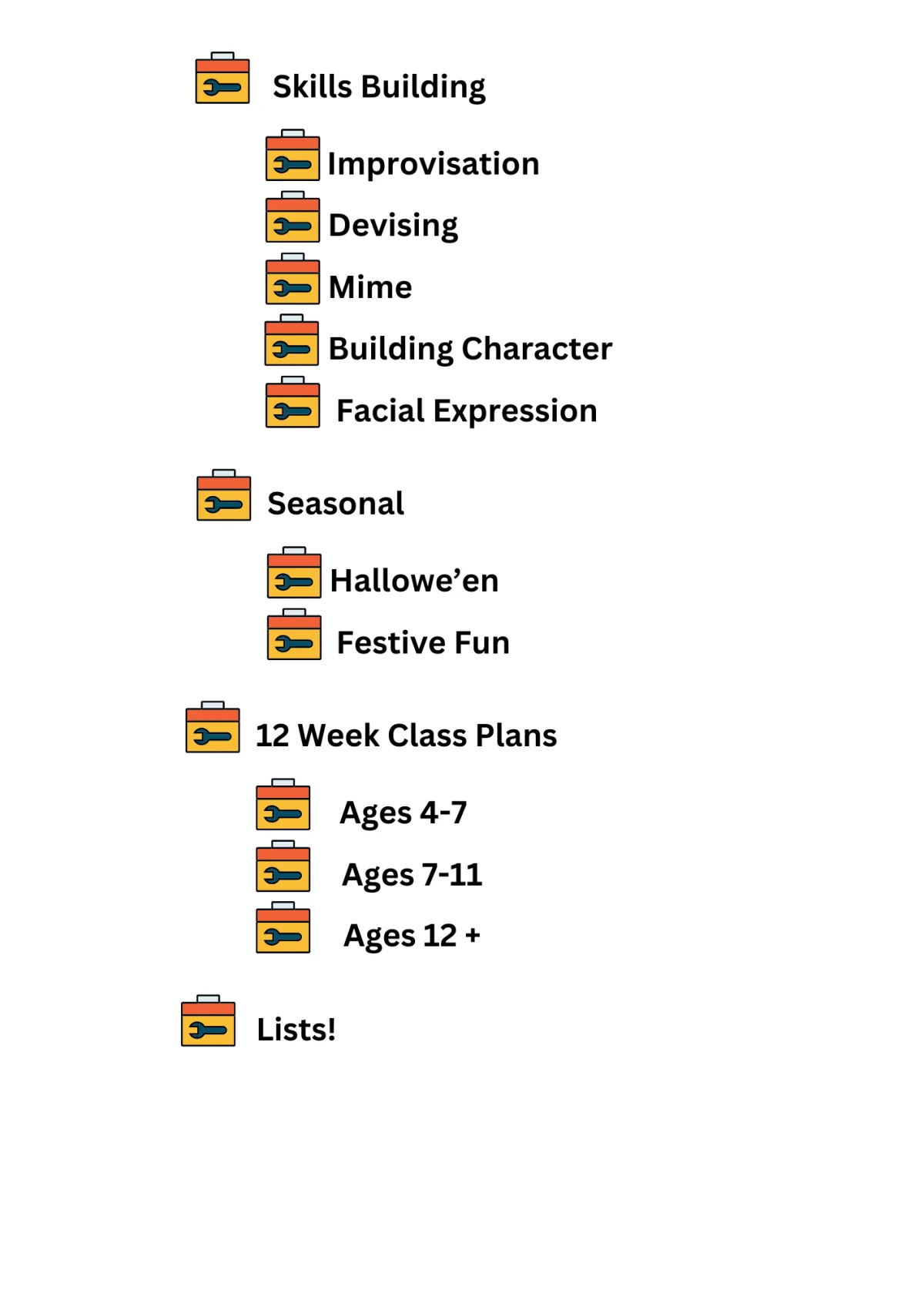 "This is such a vital resource for drama teachers and business owners. Jackie has beautifully broken down lesson plans, exercises and games in clear, easy to access sections to make drama teachers' lives so much easier. I'm sure many of you have had a sinking feeling the night before a class because you've been overwhelmed doing other things or working on your business. The drama tool kit is basically your rescue remedy to create high quality lesson plans quickly! Can't recommend it highly enough."